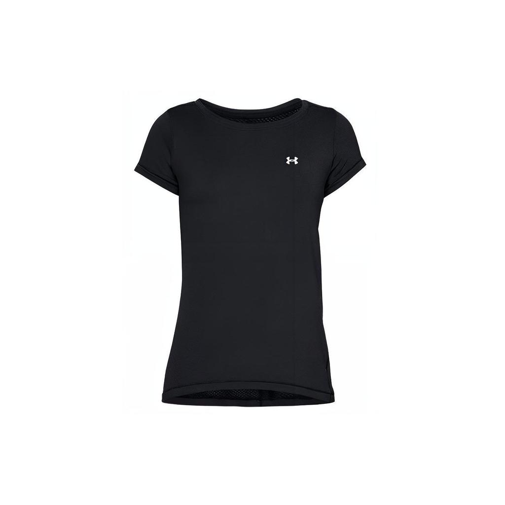 Under Armour HeatGear Armour Logo Print Crew Neck T-Shirt Women Tops Black 1328964-001