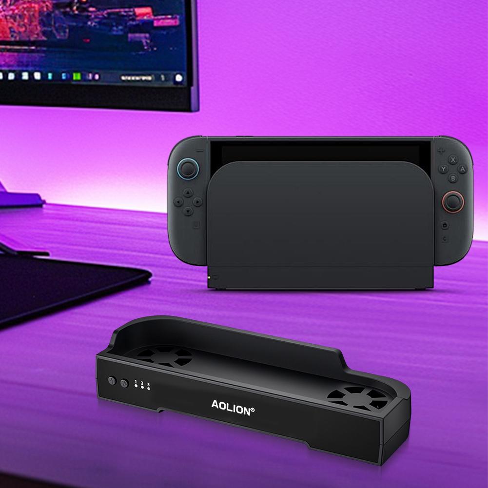 For NS2 Host Cooling Fan Base Wall Mount Game Console Base Radiator RGB Portable Heat Sink Support Wall Hanging Bracket