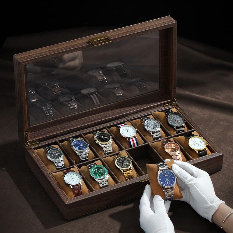 PU Leather Watch Box Organizer Watch Case with Glass Top