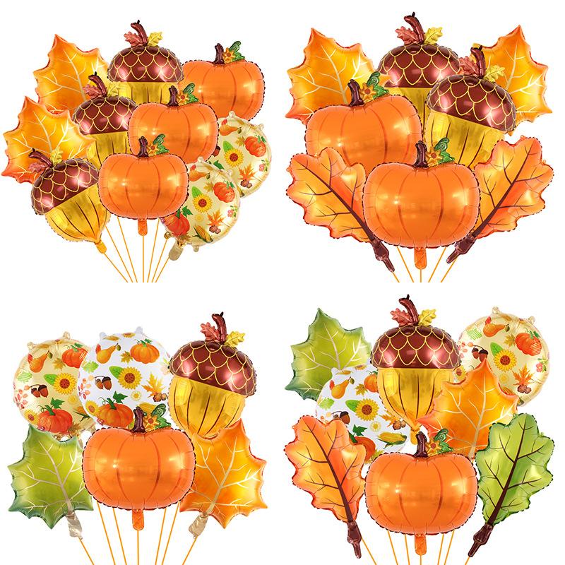 Celebrate the Harvest Thanksgiving Balloon Set Pumpkin Maple Leaf Pine Cones Aluminum Film Balloon Birthday Party Decoration Props