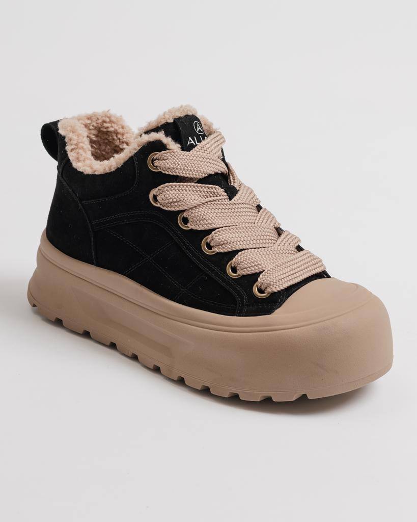 Ботинки на платформе короткие Allsy 20254 36 черные замша байка