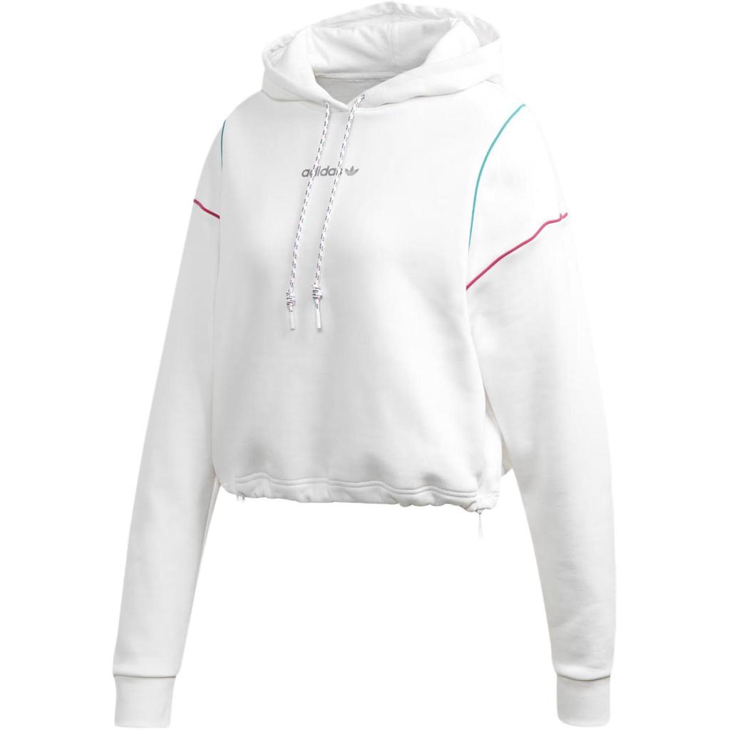 Adidas Originals Cropped Hoodie Letter Logo Print Hooded Sweatshirt Women hoodies White GC8789