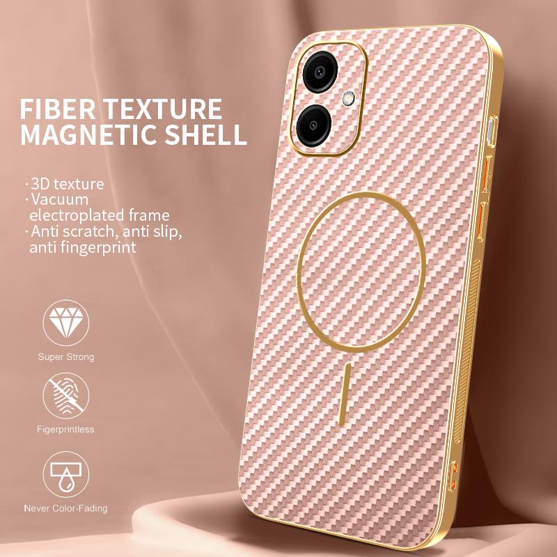 For Samsung Galaxy A06 4G Phone Case Carbon Fiber Textured Electroplated TPU Back Cover