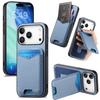For iPhone 17 Pro Case Card Holder Kickstand Carbon Fiber Texture Back Cover