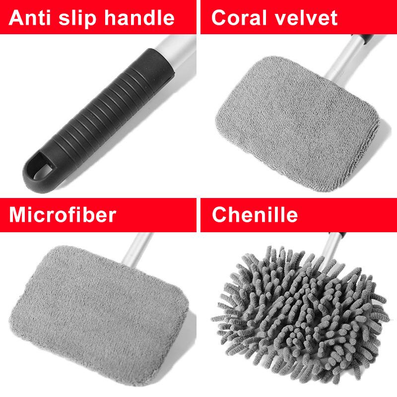 Car Window Cleaner Brush Windshield Cleaner Microfiber Protable Cleaning Tool with Handle Interior Exterior Auto Glass Wiper