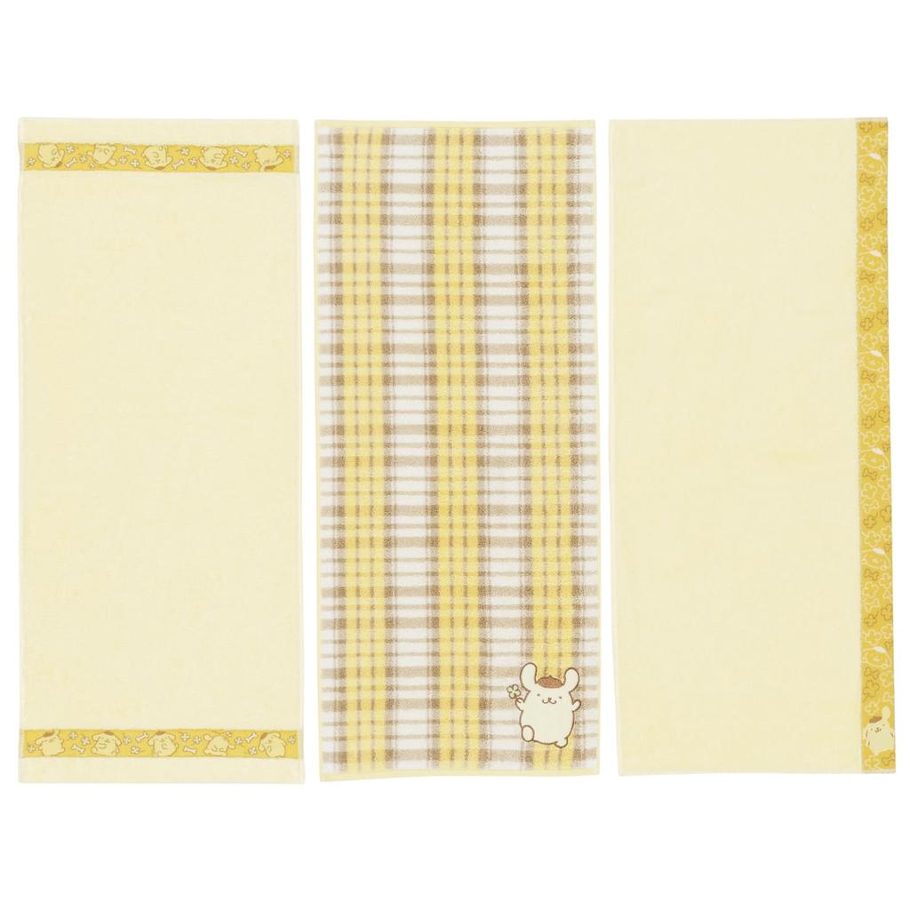 Towel Laboratory Pom Pom Purin Face Sanrio Japan Technology [Sanrio Characters] #meet Towels, 3-Piece Set, Fluffy, Fast-Absorbent, 100% Cotton,