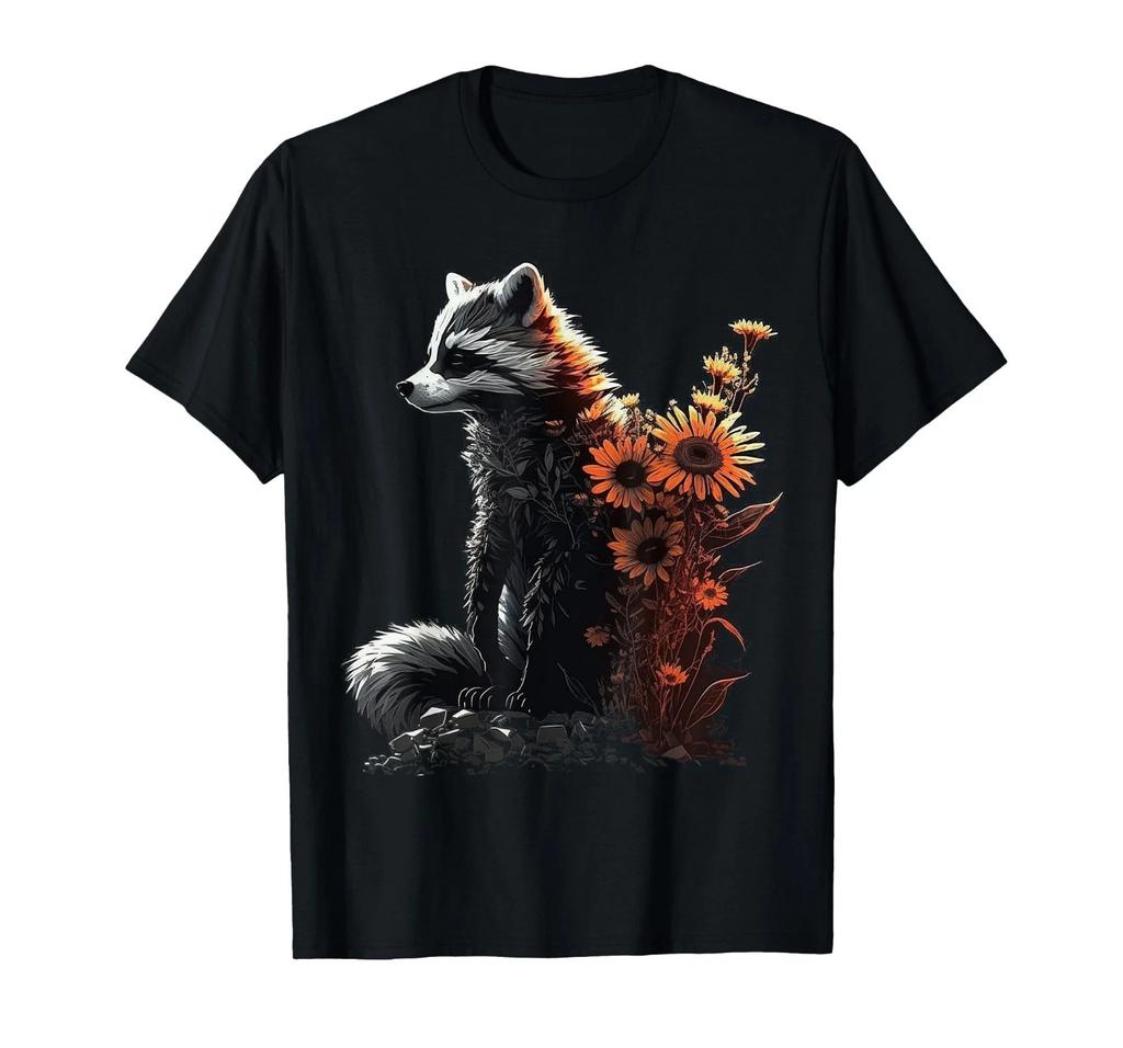 Raccoon Sunflower Animal Flower Art Raccoon T-Shirt