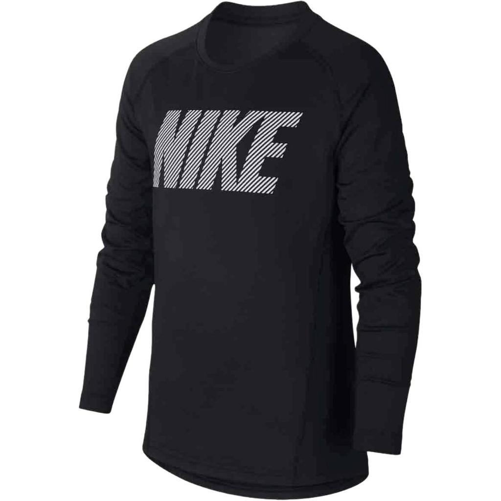Nike Big Logo Print Crew Neck Long Sleeve T-Shirt Kids Tops Black BV4404