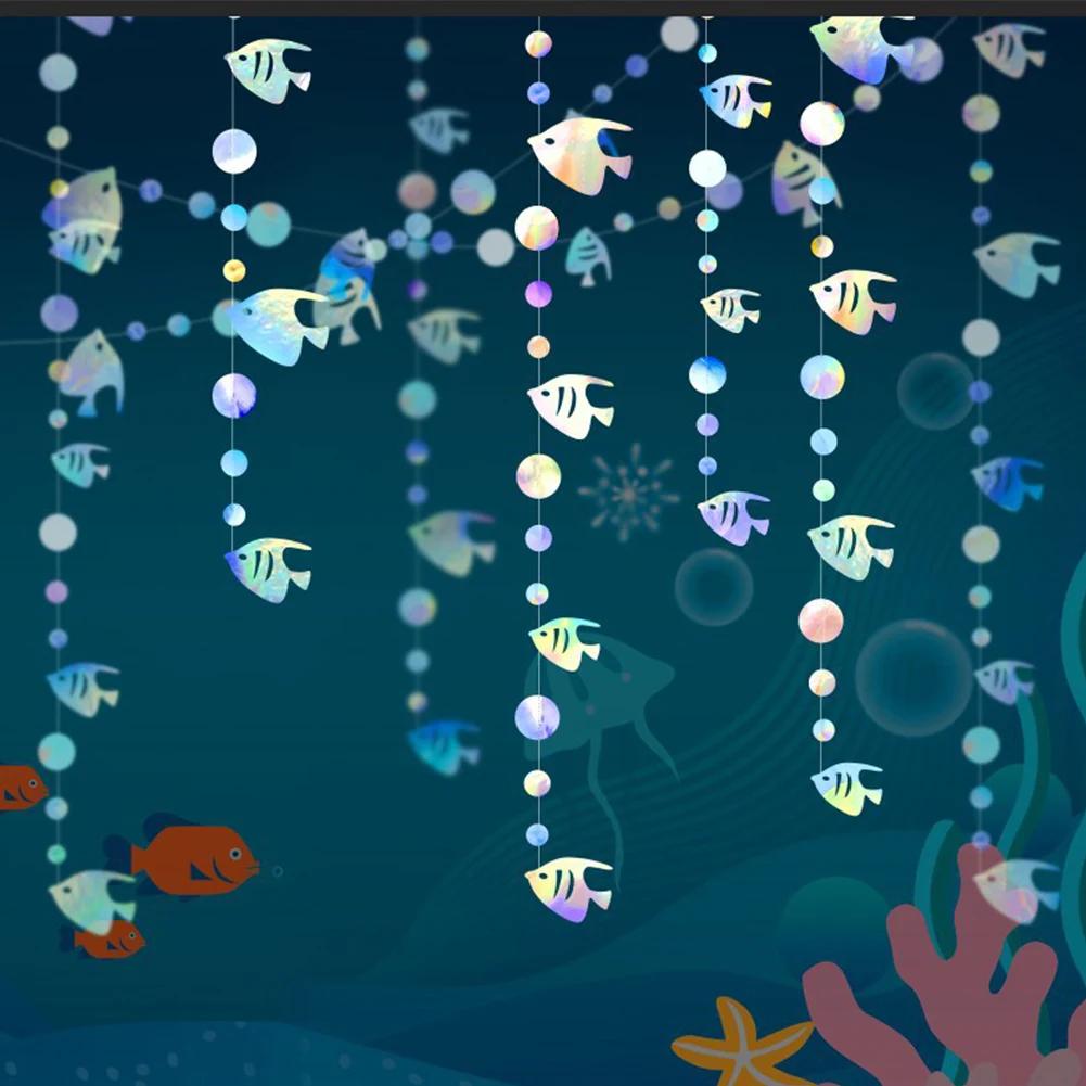Ocean Themed Decoration Ocean Fish and Starfish Paper Garland Pendant Birthday Under The Sea Party Decor Hanging Colored Banners