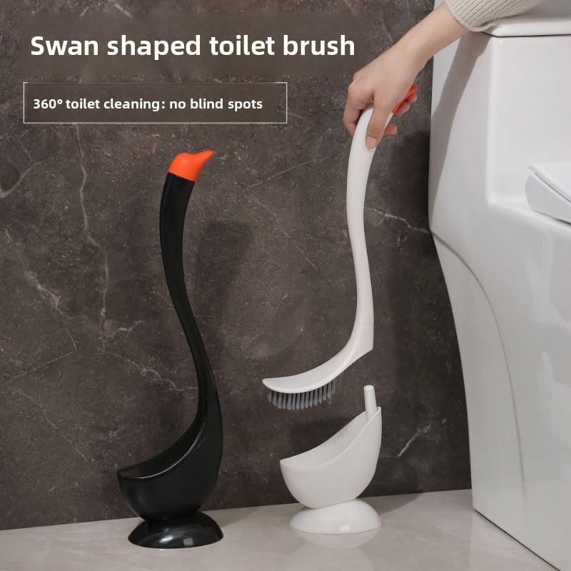 Swan toilet brush, household no dead ends bathroom creative cleaning toilet set, long handle silicone