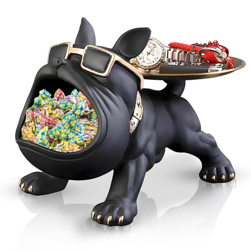 Large Resin Bulldog Storage Organizer Mobile Remote Control Car Candy Office Supplies Wallet Storage Rack Key Holder Desk Decor
