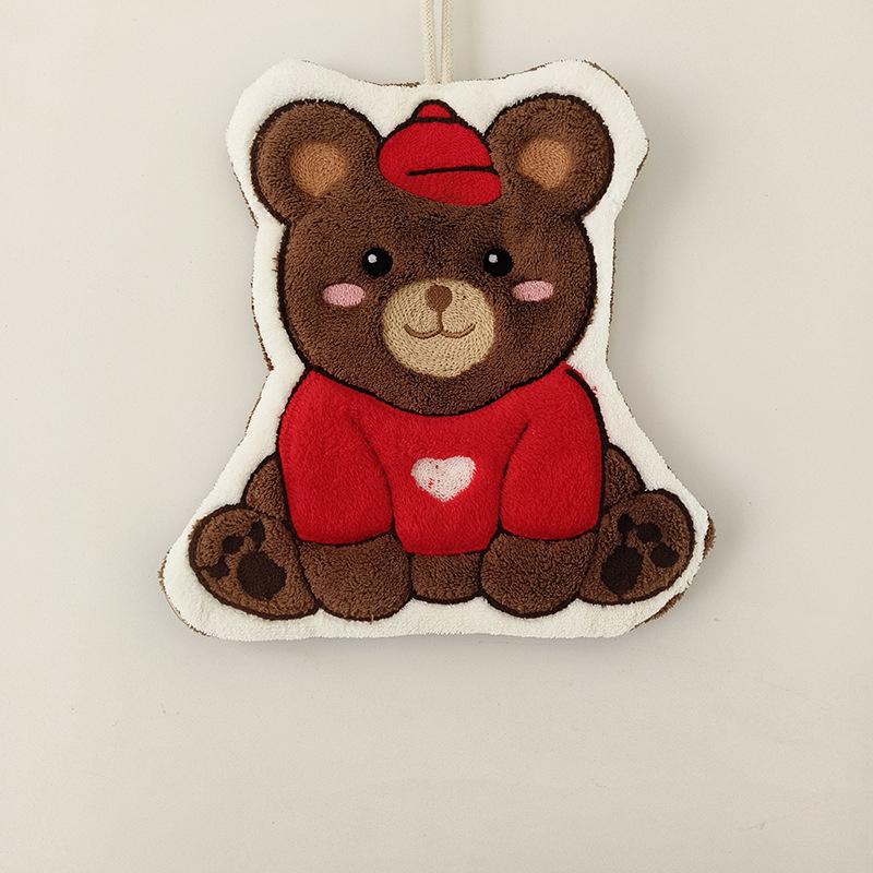 Cute Cartoon Coral Fleece Hand Towel Hanging Kitchen Household Towel Water Absorption Fast Thickened Rag Bear Hand Towel