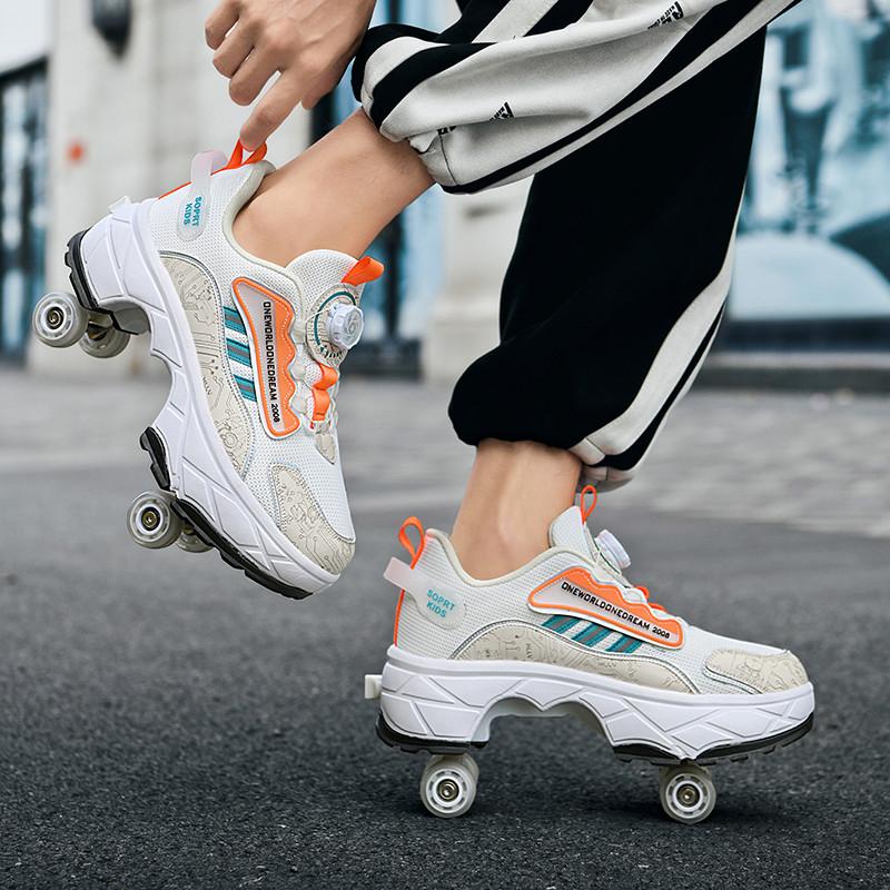 New Double-Row Four-Wheel Roller Skating Shoes Dual-Use Roller Shoes Men Women Sneakers Sport Dog walking training running shoes