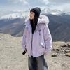 Cotton-padded Female American Retro School Overcomes Big Fur Collar Coat Hooded Short Down Cotton-padded Jacket