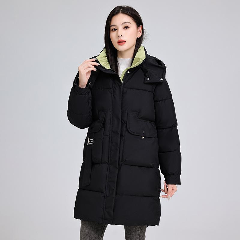 Jachetă de bumbac cu puf pentru femei, jachetă de bumbac de lungime medie, la modă și versatilă, largă, de iarnă, cu glugă, jachetă îngroșată