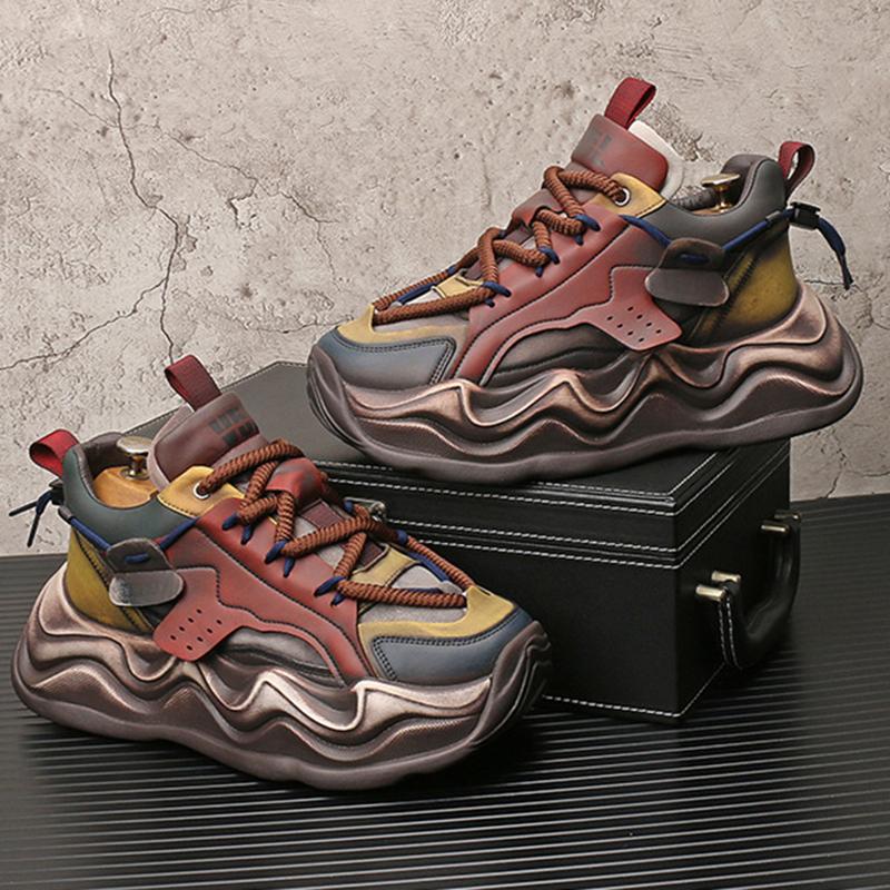 Fashion New Fashion Designer Men's Retro Mixed Colors Lace Up Platform Causal Shoes Flats Male Walking Sneakers Zapatos Hombre