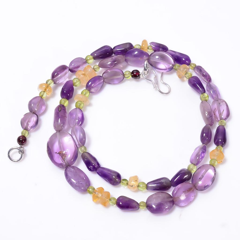 Natural Amethyst Citrine Peridot Gemstone Smooth Beads Necklace 3-15 mm 18" UB-8590