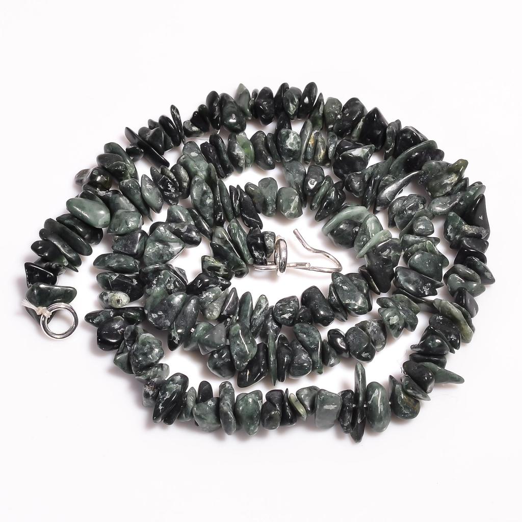 Natural Seraphinite Gemstone Uncut Smooth Beads Necklace 7-12 mm 17.5" UB-8403 UB-8403