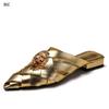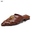 Fashion Hollowed-out woven pointed-toe flip-flops for women, new thick-heeled fashion, closed-toe half slippers, mules T77