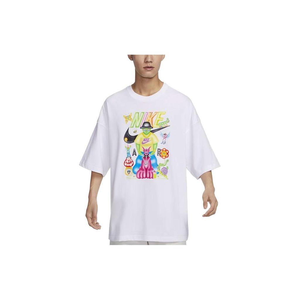 Nike Tricou cu mânecă scurtă, cu gât rotund, lejer, respirabil, cu imprimeu graffiti cu personaje de desene animate, pentru bărbați, topuri, alb FD1354-100
