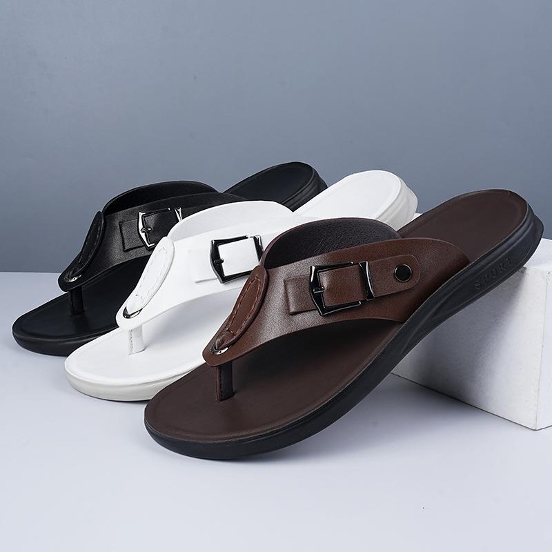 Fashion Men's Flip Flops High Quality Cowhide Leather Slippers Casual Beach Slippers for Men Non-slip Flat Slippers Summer Men's Sandals