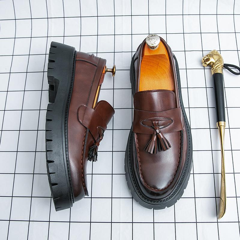 Fashion British Style Men Pointed Business Formal Le Fu Leather Shoes Spring New Style Men Comfortable Thick Soled Fringed Leather Shoes