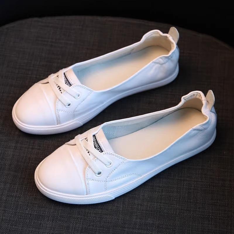 Cowhide version shallow mouth white shoes women's genuine leather summer versatile leisure travel nurse shoes board shoes single shoes