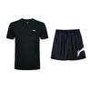 Li Ning Solid Color Round Neck Comfortable Short Sleeve Top Versatile Mid Waist Simple Fashion Shorts Casual Sports Suit AHST347-1+AAPU133-1