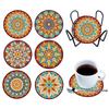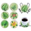 6PCS Diamond Crafts Coasters Fresh Greenery Diamond Painting Coasters Kits Mandara Wooden for Adults Kids Beginner Gift Supplies
