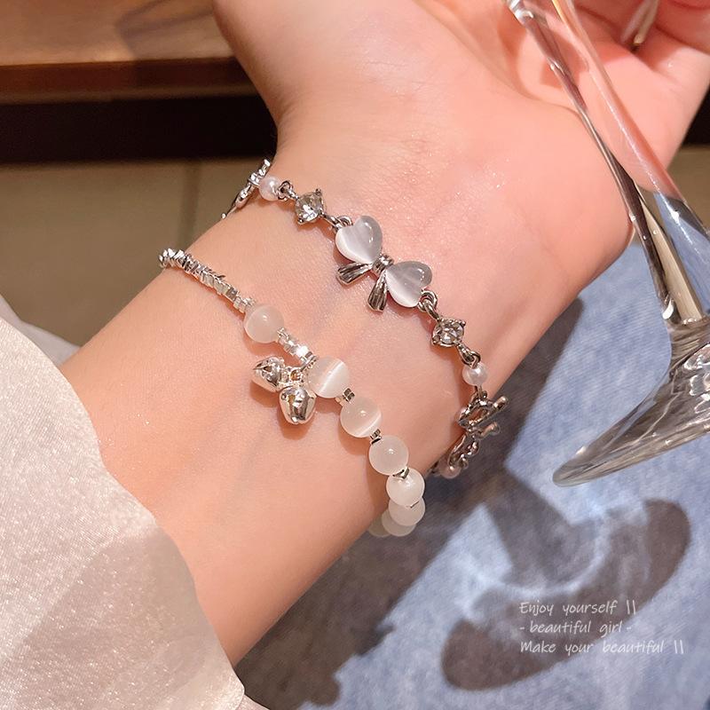 Kpop Y2k Silver Color Bow Pearl Bracelet for Women Girls Korean Sweet Opal Chain Bracelet Party Jewelry Accessories Gift