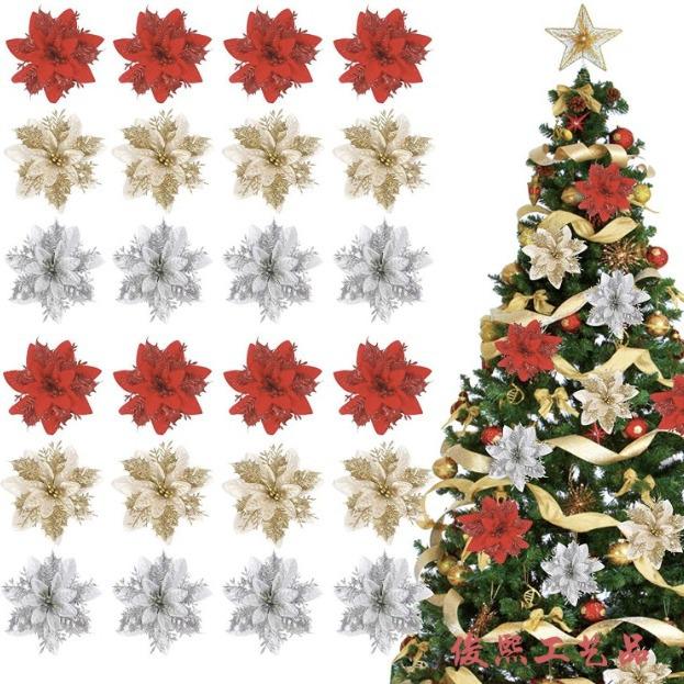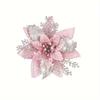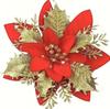Set Ornament Floral de Crăciun cu Sclipici Auriu: Flori de Simulație cu Trei Straturi pentru Copac, Coroane și Cadouri de Sărbători