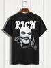 Stylish Gangster Print Shirt Comfortable Round Neck Short Sleeve Pattern Suitable for Casual Daily Outdoor Activities
