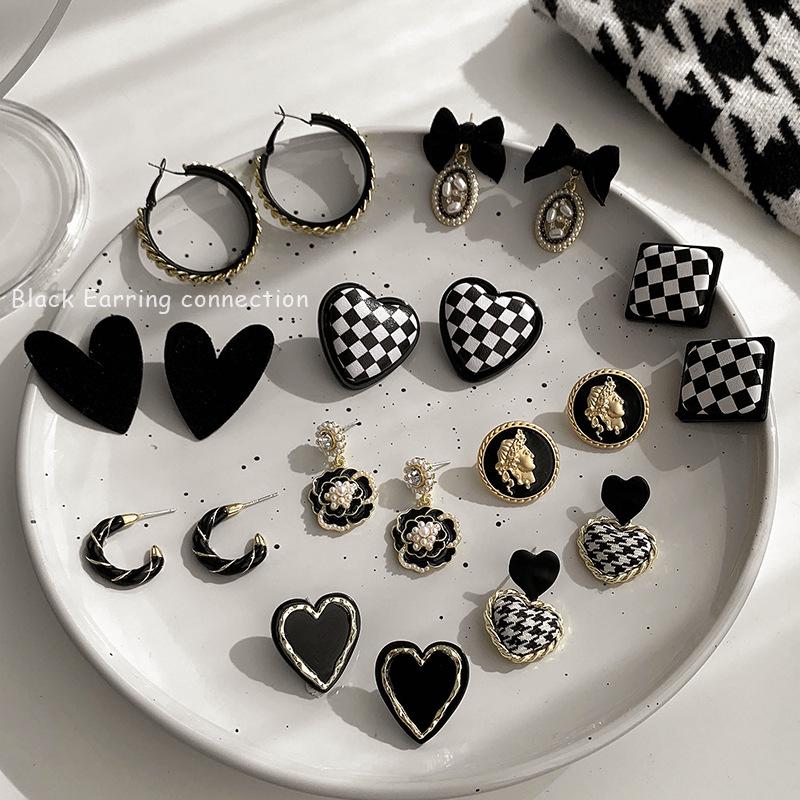 Korean Retro Black & White Checkerboard Stud Earrings: Unique & Simple Style
