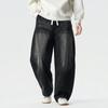 Muxiu Men's Trendy Black Unisex Wide Leg Jeans - Loose Straight Leg High Street Style Pants