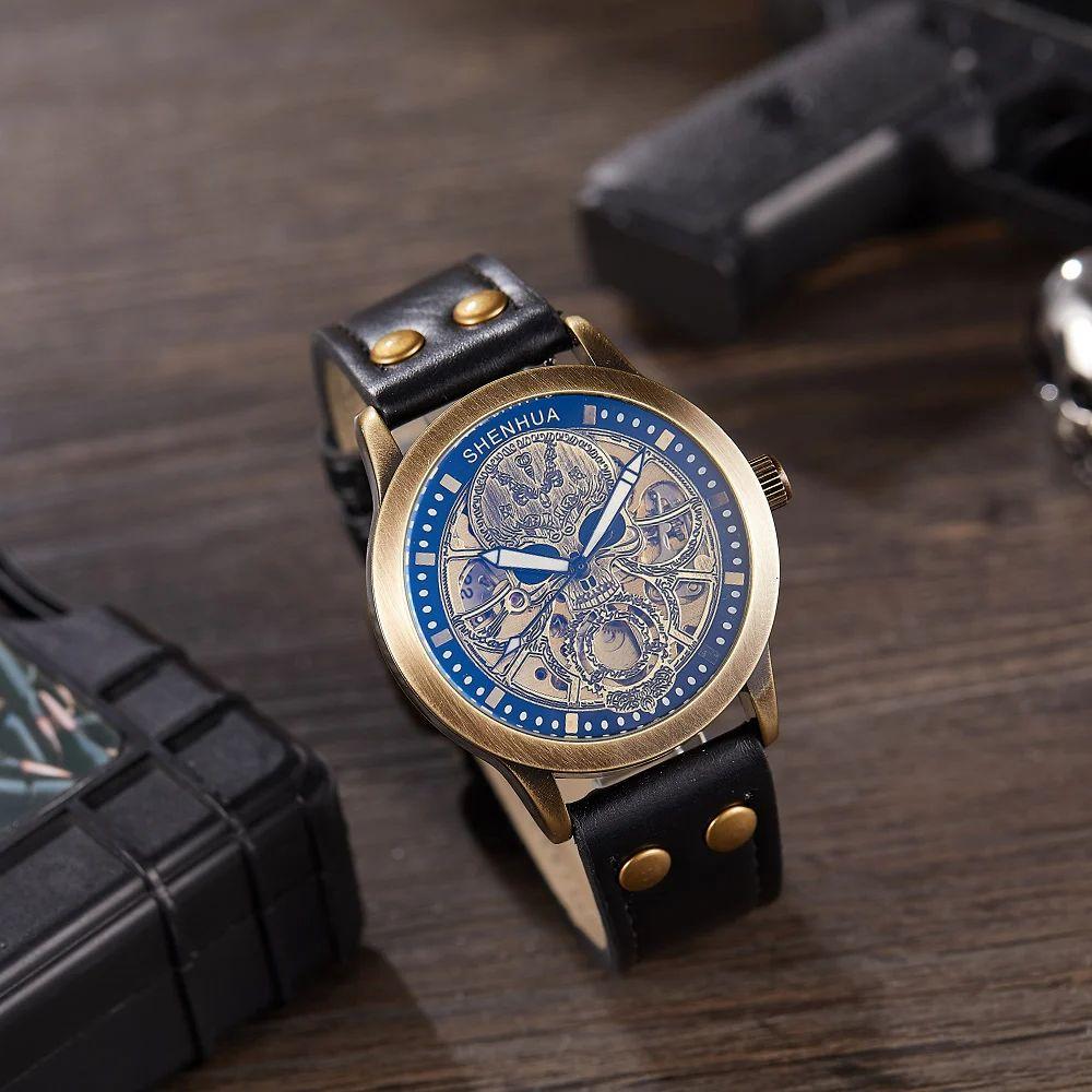 Ceas de mână bărbătesc retro la modă, Tourbillon golit, mișcare mecanică complet automată, ceasuri mecanice, reloj automático
