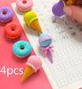 MINI 4 Bucăți Gogoașă Drăguță Rapidă de Înghețată, Vas Dulce, Stil Alimentar Acadea, Radieră, Student