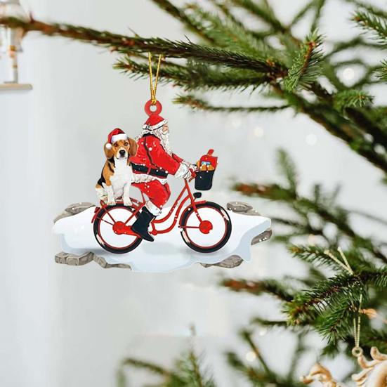 Santa Riding A Bicycle with A Dog Ornament Cute Acrylic Santa Claus Christmas Tree Ornament for Holiday Party Decoration
