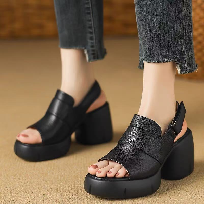 Fashion Open Toe Platform Block Heel Sandals Women's 2025 Summer New Comfortable and Versatile Platform One Buckle High Heels