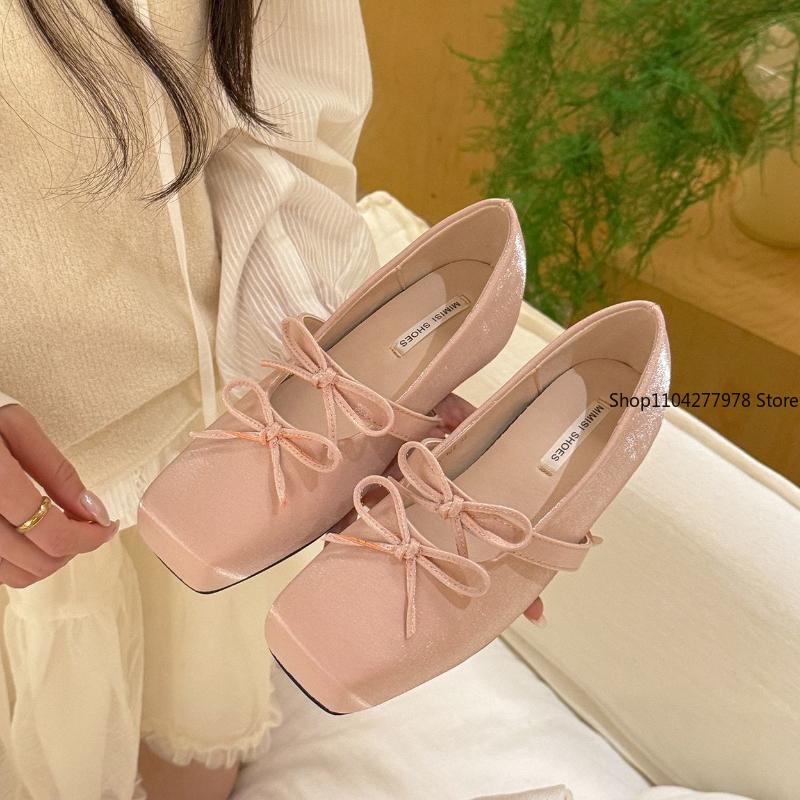 Fashion NEW Classic Silk Ballet Shoes Lace Up Ballet Shoes Women Square Toe Bowtie and Rose Flower Women Flats Elegant Valentine Shoes