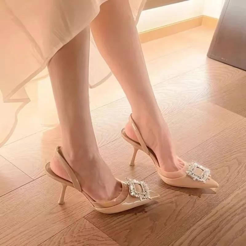 Modă Versiune Coreeană de Tocuri Înalte Sexy cu Vârf Ascuțit la Modă 2025 Nou Stras Francez cu O Curea Sandale de Purtat pentru Femei