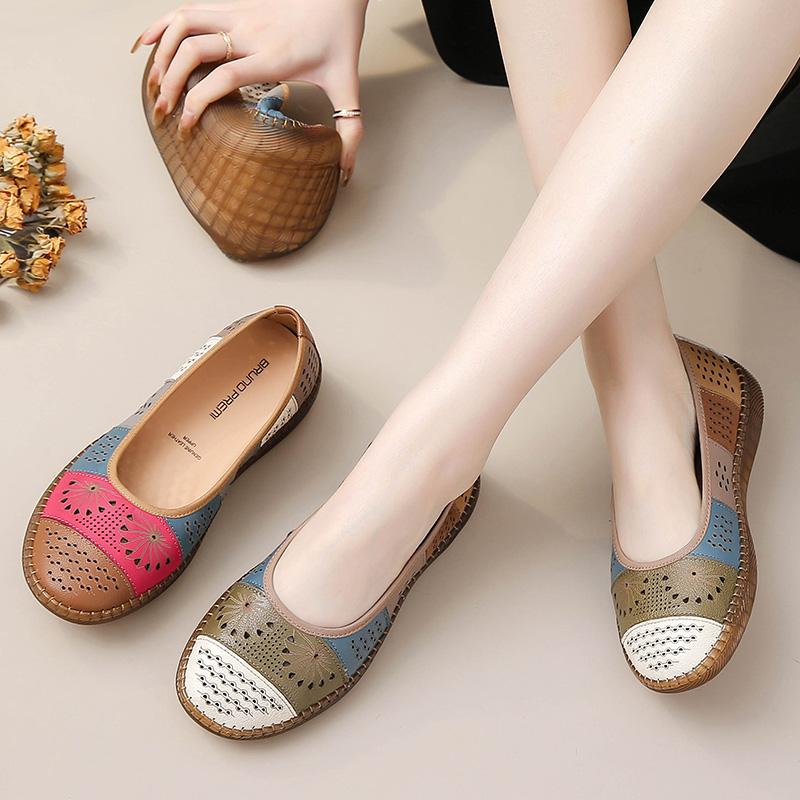 Fashion New summer cutout ballet flats women's genuine leather moccasins slip on shoes low vamp loafers woman patchwork shallow flats
