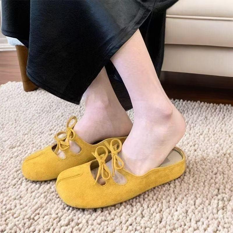 Retro round head bow inner height-increasing bag head half slippers women's summer wear one-pedal wedge slippers