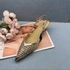 Fashion 2025 Summer Pointed Cat Heel Breathable Hand-Woven Gold and Silver French Sandals for Women