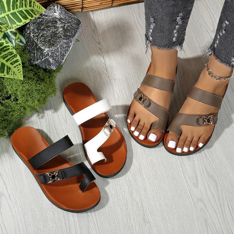 Fashion Clip Toe Flat Slippers for Women Summer New Beach Metal Sandals for Women Fashion Soft Bottom Non-slip Women's Shoes Flip Flops