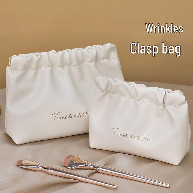 Waterproof Pleated PU Cosmetic & Toiletry Bag - Portable Handheld & Coin Purse