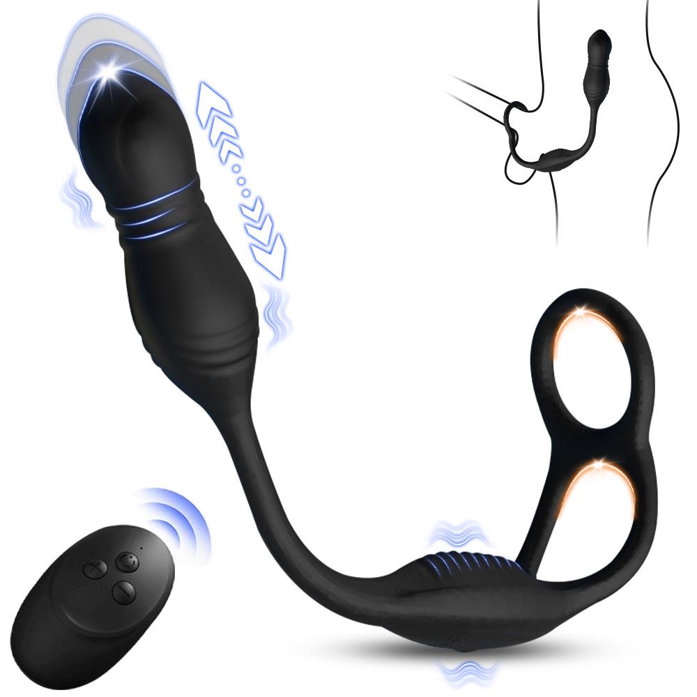 Telescopic Anal Vibrator Prostate Massager Penis Ring Anal Butt Plug G Spot Stimulator Adults Sex Toys for Men Male Masturbator