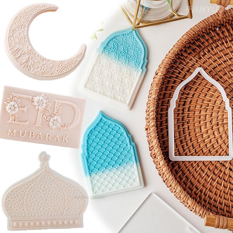 Islamic Ramadan Acrylic Fondant Embossing Stamp Press Eid Mubarak Cookie Cutters Party Pastry Biscuit Baking Decoration Supplies