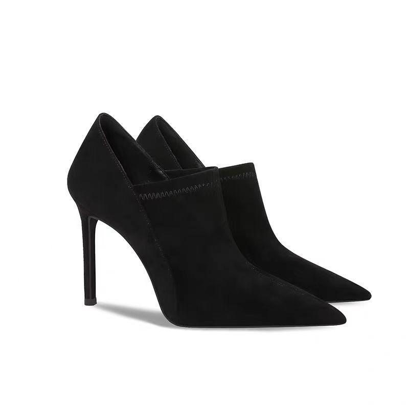 Fashion High Heels Women's Autumn and Winter Suede Deep Mouth Single Shoes Ankle Boots Elegant Temperament Pointed Toe Booties