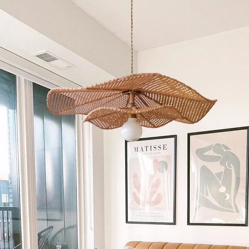 Lampa suspendată vintage cu pandantiv frunză de lotus, lămpi din ratan țesute manual de înaltă calitate pentru restaurant, sufragerie, bucătărie, corpuri de iluminat suspendate
