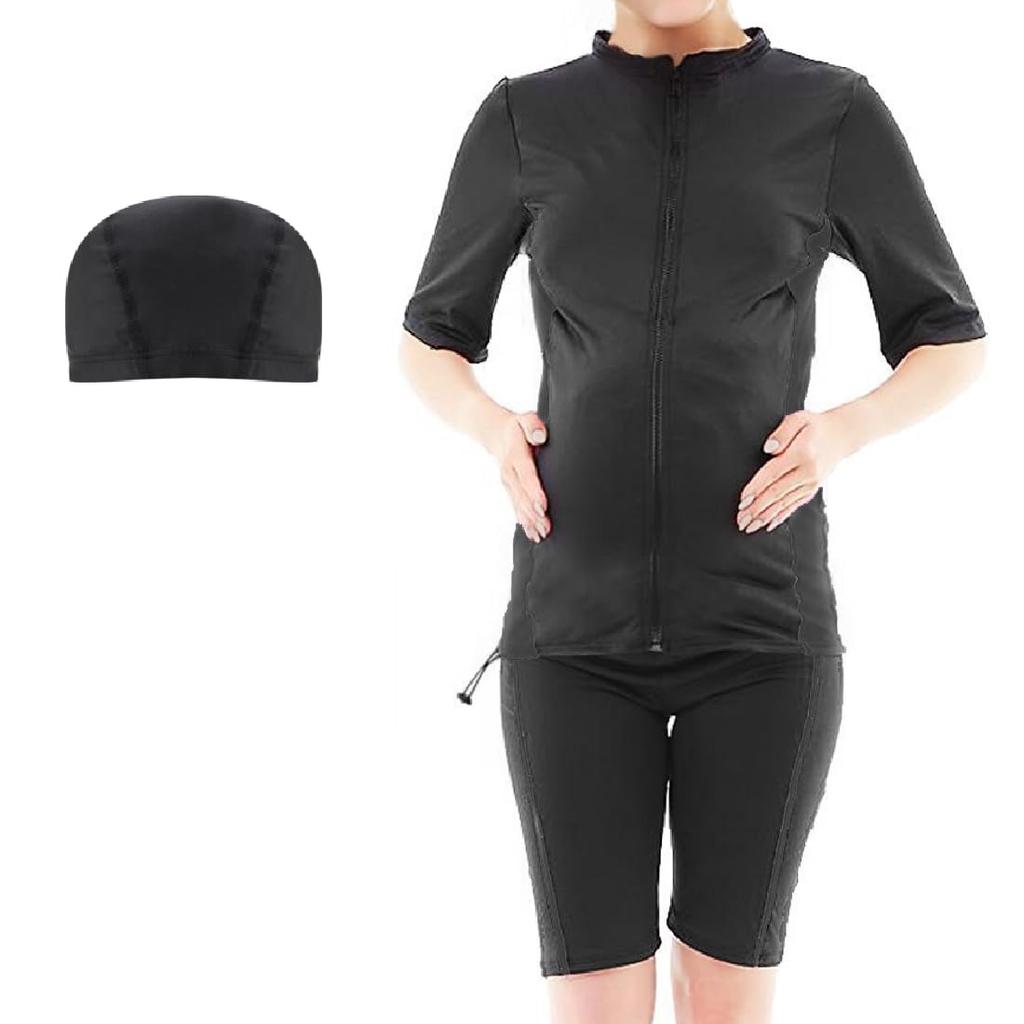 Keratta Maternity Swimsuit for Fitness, Short Sleeves, Anti-Cold, Separate Cap Included (XL, Black)